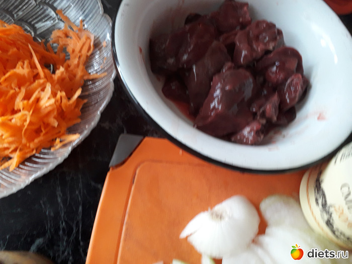 Подготовим печень, промоем. Для мягкости и нежности печени, по желанию, печень можно залить молоком и оставить на 2 часа, но это не обязательно. Можно сразу приступать к приготовлению.