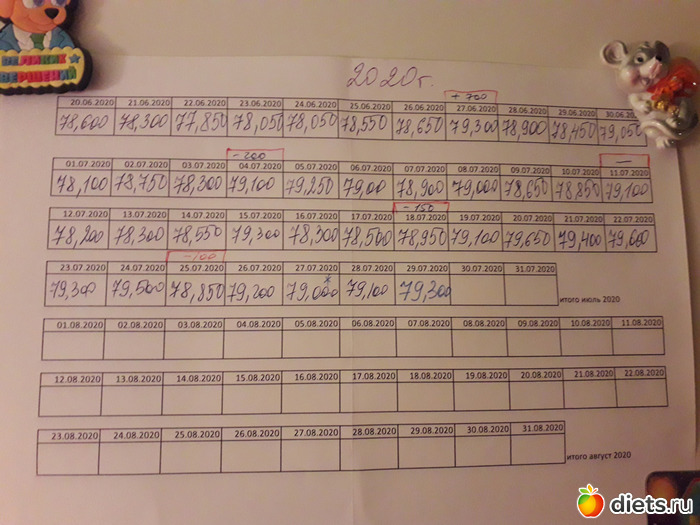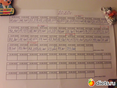 Вот мои взвешивания где четко видно что стою на месте, а мне бы отбить обратно наеденное надо... не все наедено конечно, снижение физ- нагрузки сказалось конечно