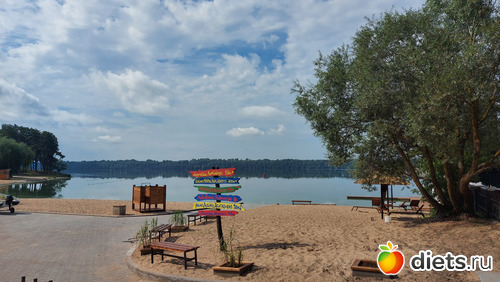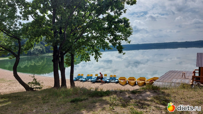 ), прокат лодок и водных велосипедов. Людей пара всего, вода цветет, купаться как по мне не возможно