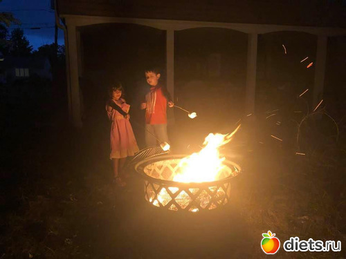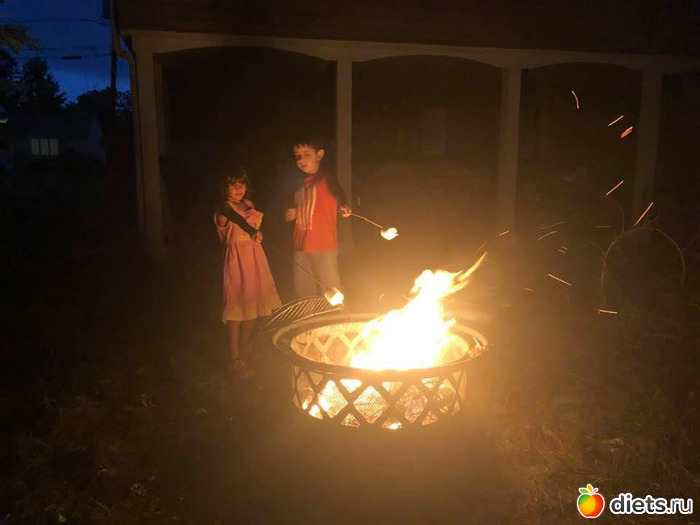 А вечером в воскресенье разожгли костер и дети пожарили зефир
