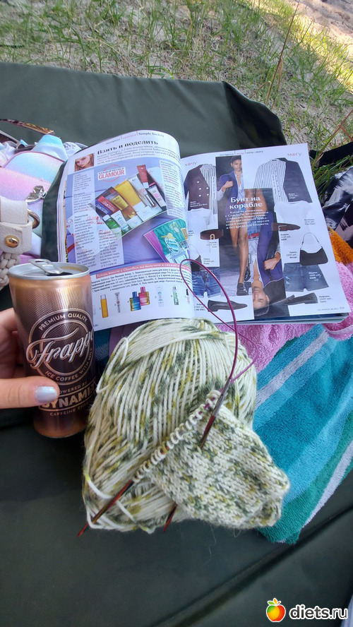 Я не люблю ни купаться, ни загорать, поэтому пока дети под надзором мужа плещутся в море, я расслабляюсь под соснами в тенечке с чтением, вязанием и холодным кофе