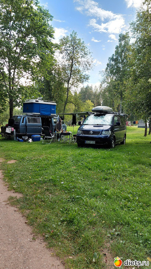 Останавливаемся в кемпинге снова в Цесисе, на берегу реки Гауя, но в другом, чем в первую ночь нашей поездки. Кемпинг "Жаргакалнс" покрасивее, но тут нет кухни, интернет хорошо ловит только днем, людей гораздо больше... От кемпинга идут пешеходные туристические тропы "Цирулиши", мы одну прошли.