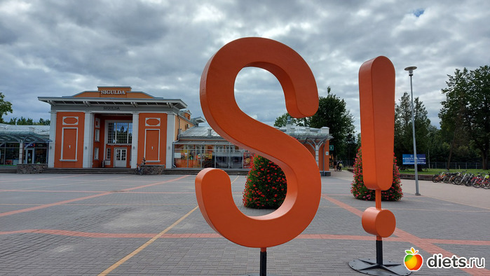 На сегодня в планах только вернуться домой, но просто просидеть день в машине не хочется. Решили заехать в Сигулду. В Сигулде мы были много раз, этим летом в июне были, в первый день этой поездки тоже были, а вот ни разу не гуляли по самой Сигулде, все время выбираем какие-нибудь природные точки. Едем в центр Сигулды, берем карту с размеченым маршрутом в информационном бюро и идем пешком 5 км