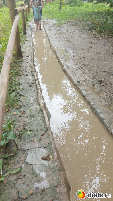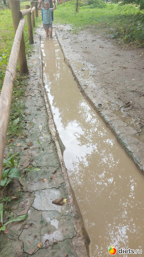Этот отрезок 1 м глубиной + ямы. Висит объявление, что не подходит для детей, поэтому я дочку провела другим путем