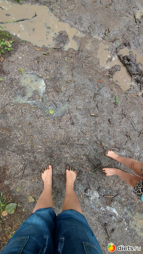Уделаны грязью мы были по уши, особенно муж, который прошел и отрезок с болотом по пояс
