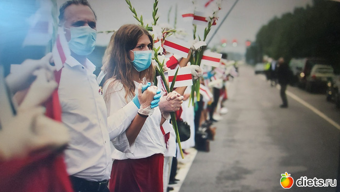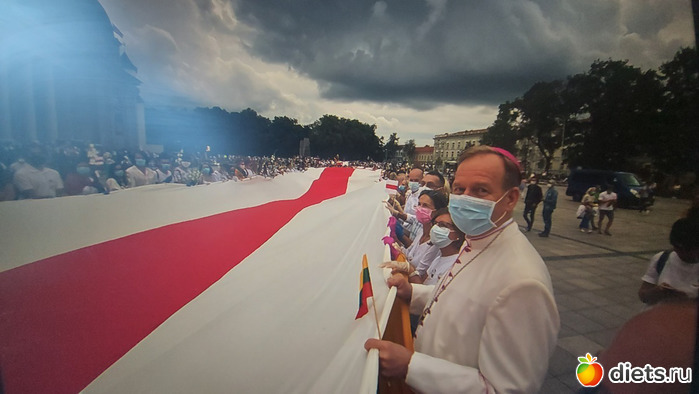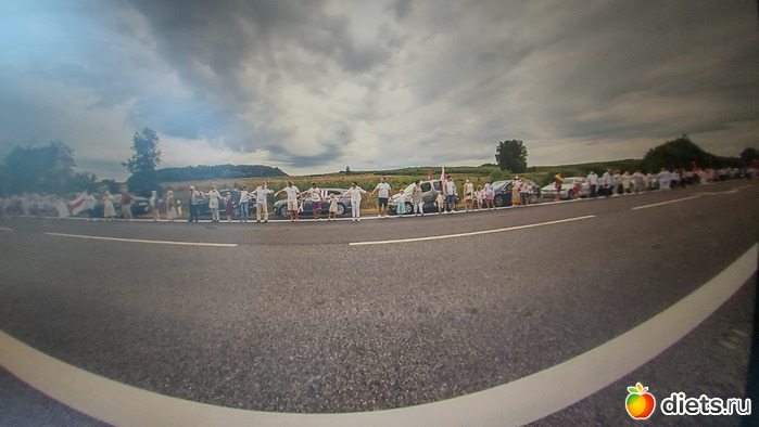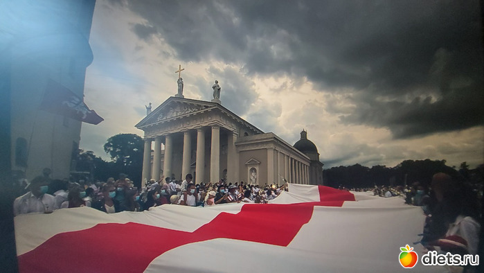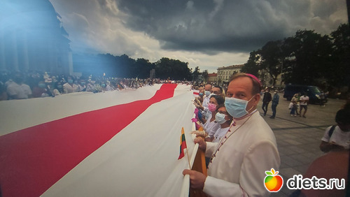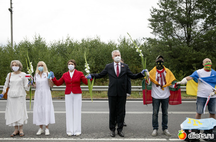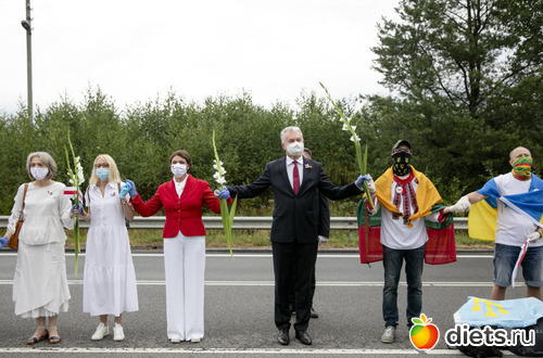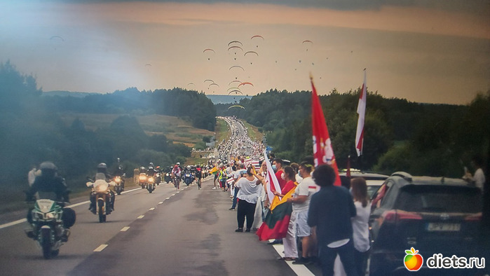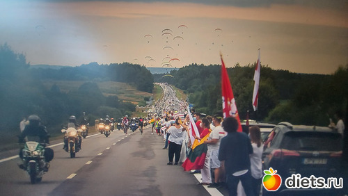Ну а вечером того же дня у нас в стране произошло неординарное политическое событие. 50 тысяч человек, одетых в белое и красное, взявшись за руки, образовали живую цепочку от столицы Вильнюса до границы с Беларусией в Мядининкай. "Путь свободы" протяженностью 39 км несколько часов пел гимны, махал флагами и гладиолусами и всячески выражал поддержку и солидарность с оппозицией Белорусии