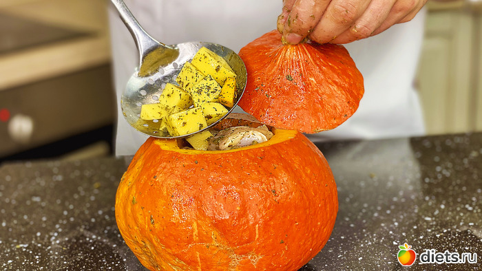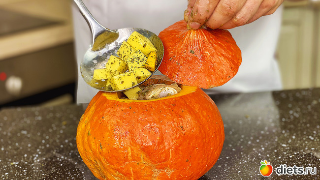 Вкусная фаршированная тыква с мясом и картошкой, запеченная в духовке. Это обалденно вкусно! Осенью, в сезон тыквы я всегда готовлю такое жаркое. Можно сытно и недорого накормить всю семью. А еще это идеальное блюдо на Хеллоуин. Обязательно попробуйте этот рецепт. Ингредиенты: Тыква - 1,2 кг Картофель - 4 шт. Чеснок - 2 зубчика Мясо - 200 г... Читать полностью |