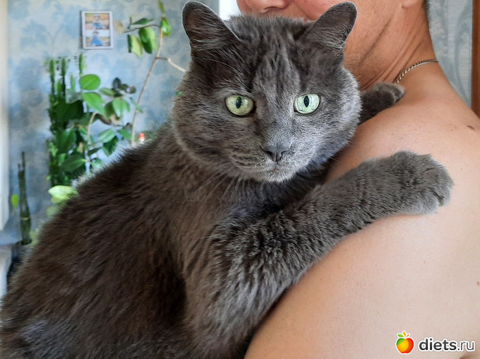 Ну, и всем привет от моего Тимошки. Вот так он любит коалить на папе))) просто обожает. просится на ручки, как ребёнок и с таким удовольствием потом на нём висит)))