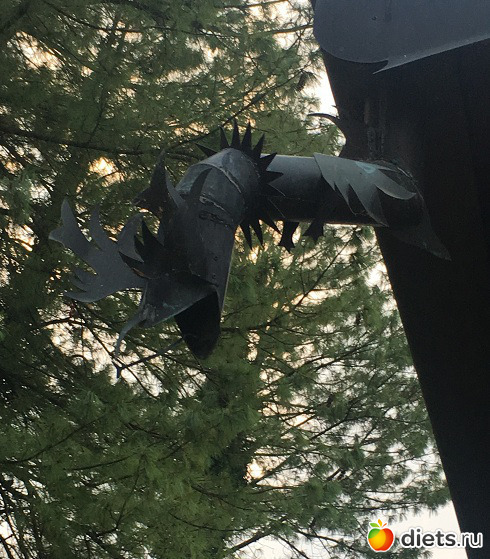 Интересно, сколько ходишь, а все время замечаешь что-то новое. В этот раз - оригинальные водоотводные конструкции на крыльце одного из домов. Что это? Я думаю рыба, и когда идет дождь, вода красиво вытекает у нее изо рта.