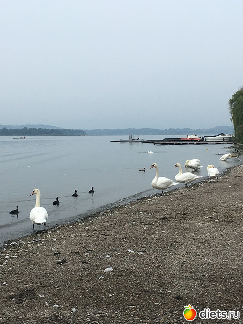 Ну и птицы, конечно. На нашем берегу - больше всего лебедей!