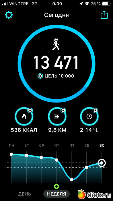 Итог ходьбы (должно быть конечно 10 км, ну да ладно):