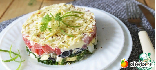 Рецепт «Слоёный салат из баклажанов и копчёного сыра»: