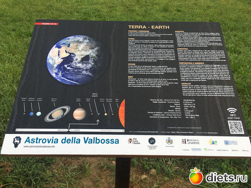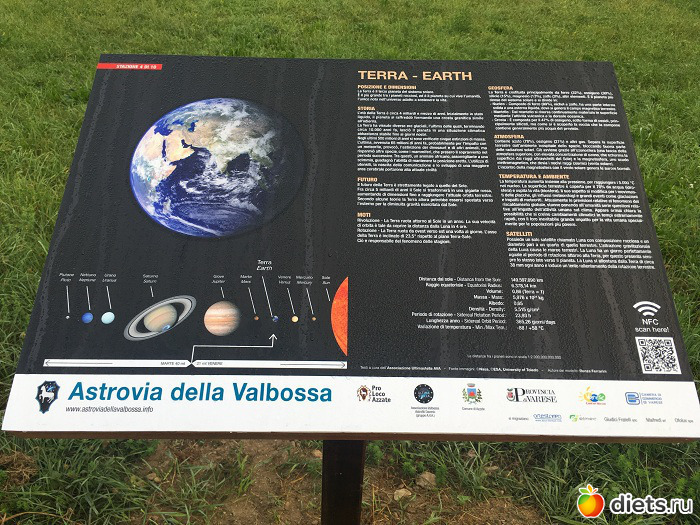 Ну и из новинок: в районе 4-го километра опять позаботились о просвещении итальянцев (и туристов), поставили информационные щиты с планетами солнечной системы, правда пока только с малыми. Я Землю сфотографировала