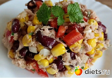 Болгарский перец и лук мелко нарезать. Тунец размять вилкой. Всё ингредиенты смешать. Посолить, поперчить... Читать полностью