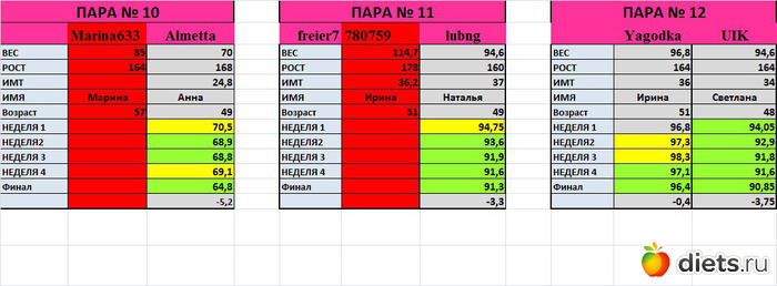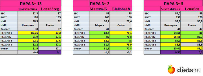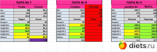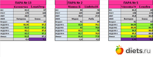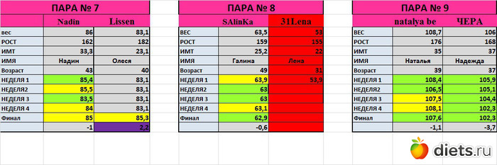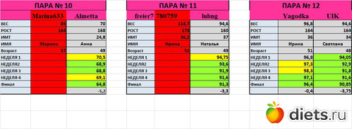 По проценту (%) скинутых кг результаты немножко отличаются.