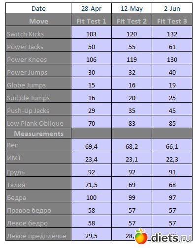 Итак, я закончила первый месяц insanity, выложила отчет (всем спасибо за теплые слова!), потом началась восстановительная 5-я неделя. Она исключительно приятна! Не такая сумасшедшая как основные тренировки, но и я бы не сказала, что она совсем "ни о чем", нагрузка чувствовалась. Потом day-off перед вторым месяцем выпал на день самого сложного зачета - и это отличная случайность, потому что вчера (а это было вчера) я так вымоталась, что делать не то что второй месяц - восстановление не смогла бы!