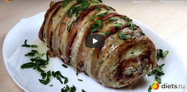 6. Рулет завернуть полосками сырокопченого бекона.