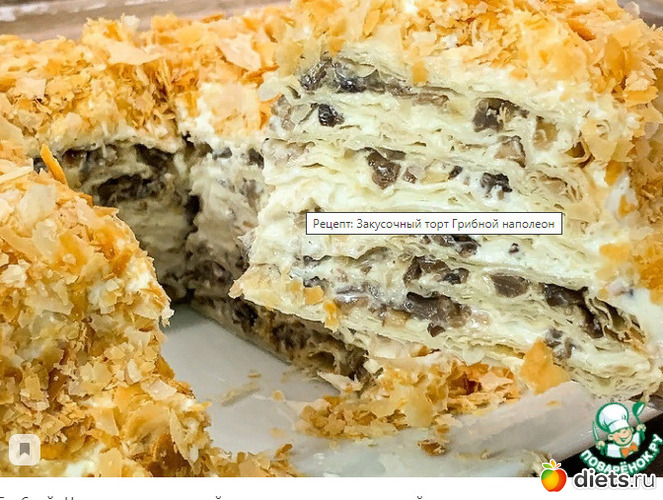 Грибной «Наполеон» это простой в приготовлении закусочный торт для праздничного стола.