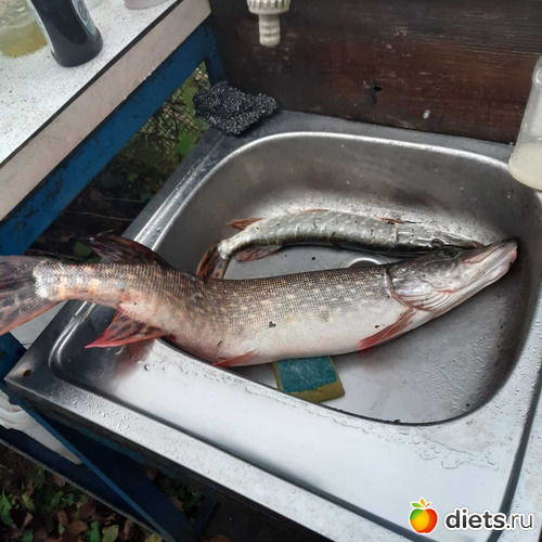 Щучка, пойманная мужем на дачном озере, весом 2 кг