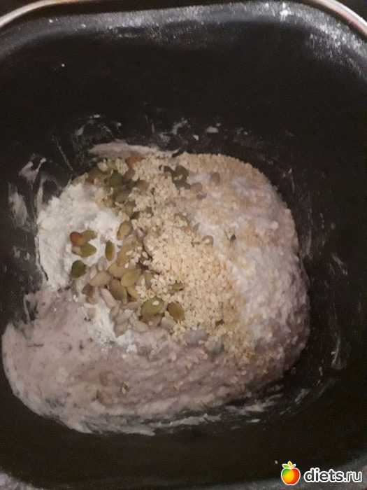 -Пшеничный хлеб с черноплодной рябиной, семечками подсолнечника и тыквы, с кунжутом в ХП