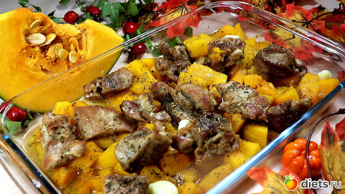 Быстрый и простой рецепт из запеченной тыквы с индейкой в духовке.| Рейтинг: +8 |