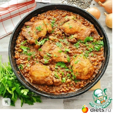 Рецепт «Цыпленок с чечевицей в томате»: