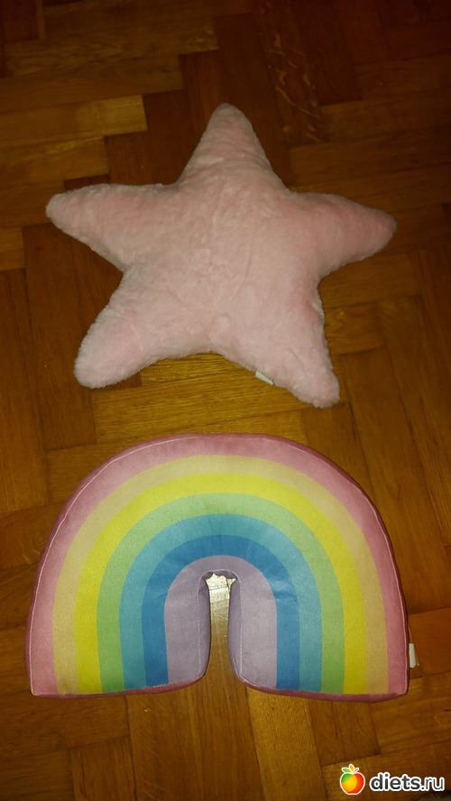 2 детские декоративные подушки и сиреневый лак для ногтей