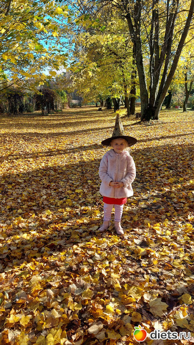 Дочка в такой шапке, потому что в этот день был Хэллоуин, и она с самого утра изображала ведьму