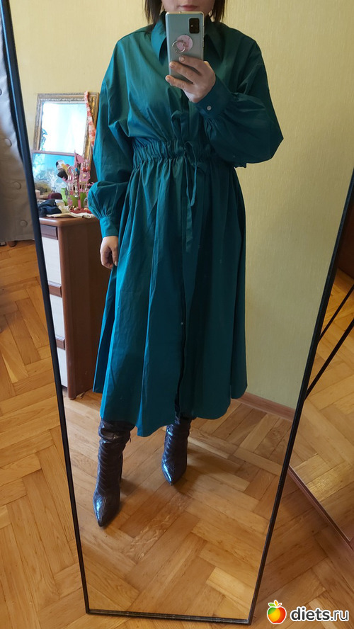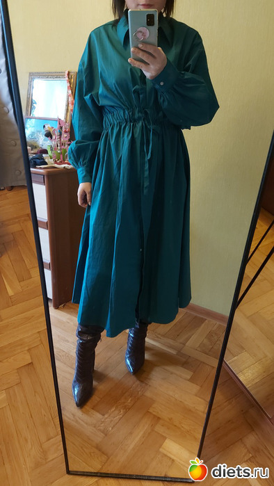 Платье ооочень сильно оверсайзное, легко в него могло бы поместиться две таких, как я. Ношу и соло, и на водолазку, в поездке к маме под низ поместила даже оверсайз свитер