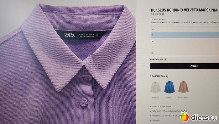 Еще один аналог Зары - рубашка из тонкого вельвета