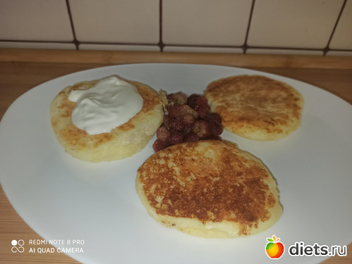 Завтрак: сырники с ягодами и добавила от себя сметанки