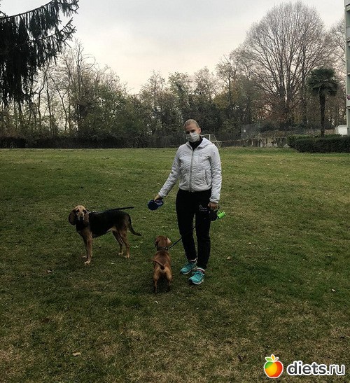 По воскресеньям я хожу утром с Лесли 5 миль по программе "5 дней с Лесли Сансон", делаю все за пять дней. Получается 8000 с чем-то там шагов. Больше ничего не делаю, кроме прогулки с собакой. Дочка со мной пошла, поэтому большую собаку тоже взяли.