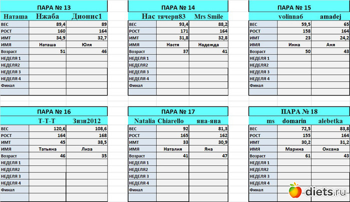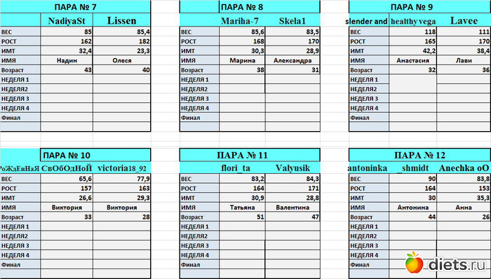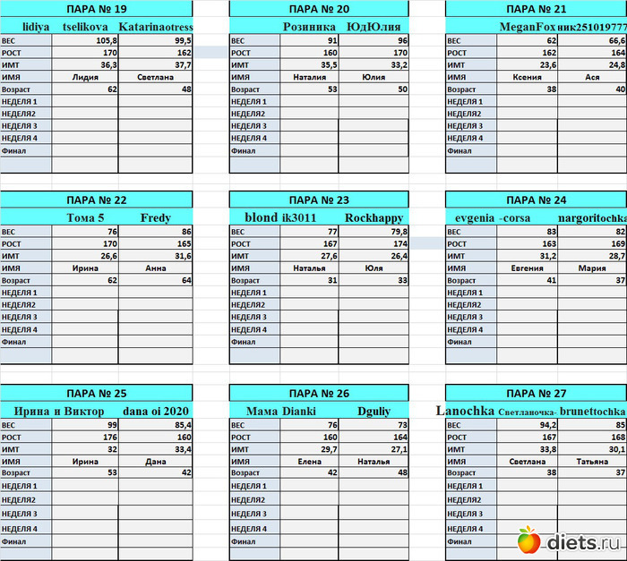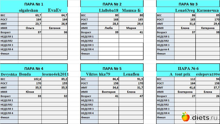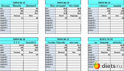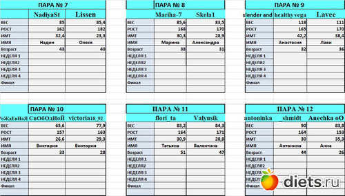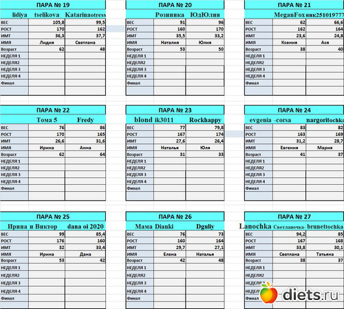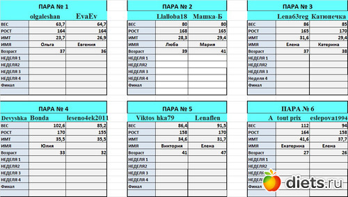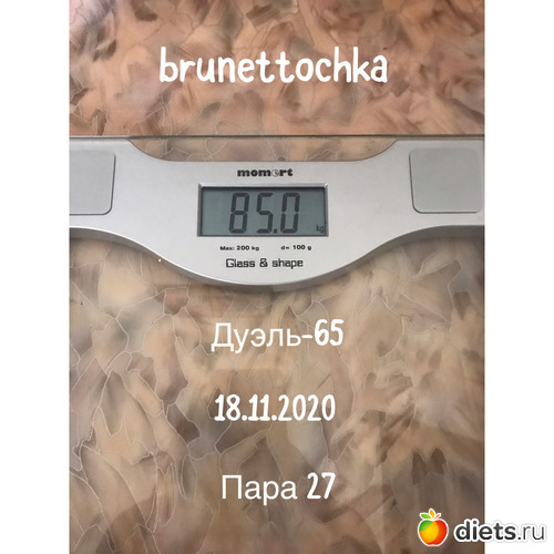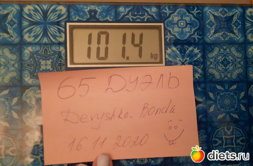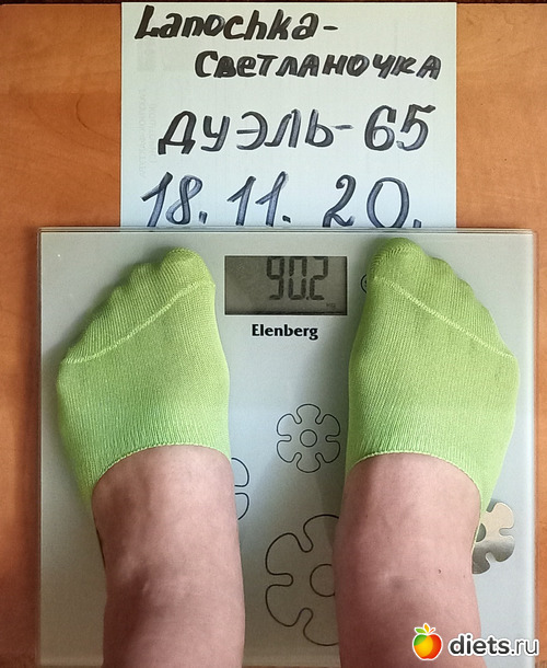 от первое взвешивание. Но оказалось, что я вешу больше, чем показала в заявке.В планах в этой дуэли похудеть на 4-5 кг. Всем успехов!