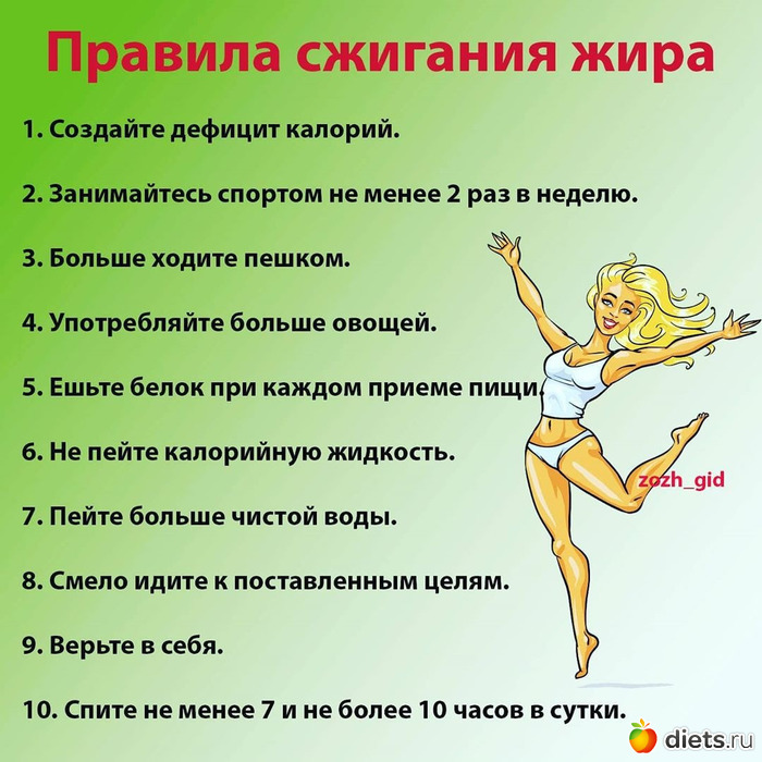 9. Не нервничайте. Во время стресса освобождаются жировые кислоты, которые перераспределяются по кровеносной системе и откладываются в жир. Если учесть, что стресс может «заедаться» едой, то ситуация усугубляется.