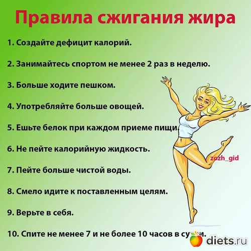 1. Не голодайте и не изнуряйте себя низкокалорийными диетами. Откажитесь от голодных диет с рационом, состоящим из трех капустных листов и одной морковки. Вы - человек, а не кролик, и для того чтобы нормально функционировать вам нужна энергия. Когда мы голодаем или резко сокращаем потребление калорий до вредного минимума, то организм, заботясь о нашем выживании, начинает накапливать жир. Минимальное количество калорий потребляемое на диете должно быть не меньше 1200 калорий, все что меньше этой цифры принесет лишь краткосрочный результат, набор веса, и проблемы со здоровьем.