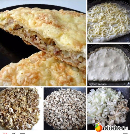 5. Выложить всю начинку на половину теста. А другой половиной накрыть сверху и закрепить края.