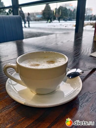 Пока гуляла, зашла в кофейню. Взяла чашку капучино. С сахаром я давно кофе не пью, максимум с молоком или сливками.