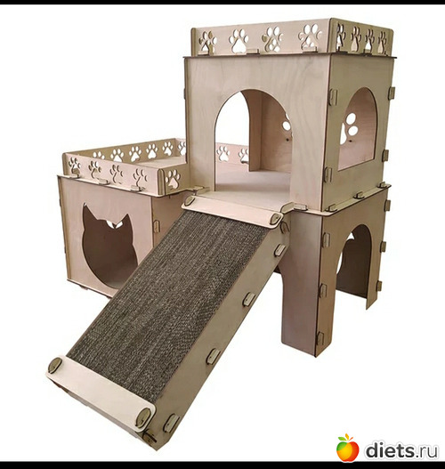 Хочу доработать этот домик еще столбами когтеточками, матрасиками и скорее всего покрасить в какой-нибудь цвет, но это будет понятно по факту доставки.
