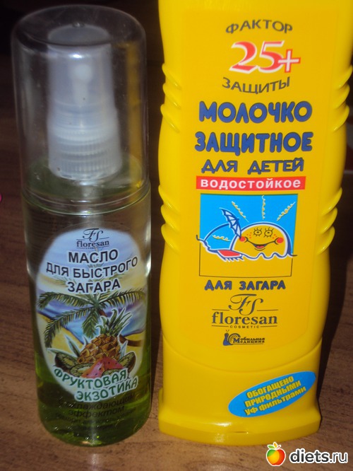 Мы со старшей дочей мазались маслом, а для младшей дочи я заказывала защитное водостойкое молочко. Старшая