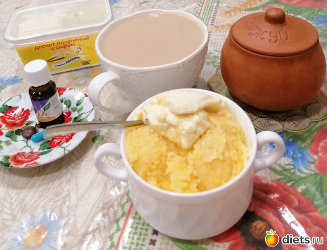 Привет девченки!!! Сегодня завтрак другой))) вчера Алексашка сварила вечером кукурузную кашу, люблю её с таким вот сладким сыром. Редко но бывает.