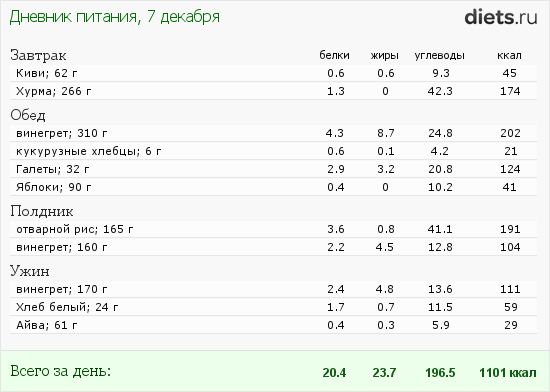 Всем привет, сегодня отчитаюсь за предыдущие кружки, начнем с веса: , на сегодня вес 64.1, пока стоим на месте, ждем изменений в меньшую сторону Замеры уже сделаю после витаминного Теперь пройдемся по питанию с 6 по 8 декабря. Собиралась я поесть винегрет в воскресенье, но оставила эту затею, перенеся ее на 07.12.2020., и вот что получилось: Дневник питания за 6 декабря...