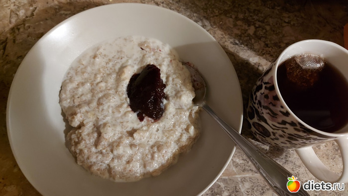 2. Покончив с сердцем, вернулась к стандартному своему завтраку - каше. На фото каша 4 злака и в ход пошло польское варенье без сахара