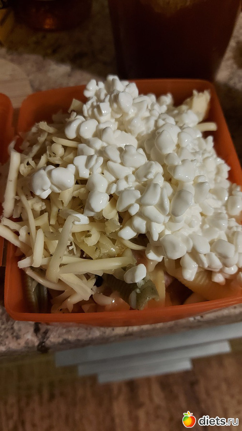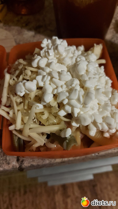 4. Обеды все дни на работе как всегда яешни из 2х яиц, один обед под влиянием Марины-Майраши: макароны с сыром и зерновым творогом. Макароны не видны, а они там крутые были, со свеклой, шпинатом и тыквой вроде. Одолела полпорции только, вкусно, но сытно, и наложила многовато