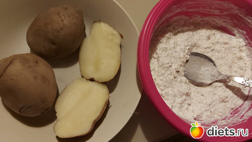 Приготовил запеченую в духовке картоху с соусом из обезжиренного творога