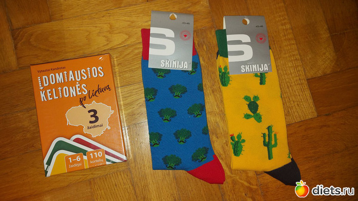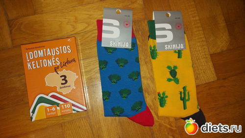 Вчера суп варили, грибной, даже туда брокколи добавил (себе отдельно в тарелку). Да и в принципе он любит такого плана ироничные носки, я часто ему покупаю. Ну а настолка по типу викторины на тему путешествий по Литве. Как раз для нашей семьи