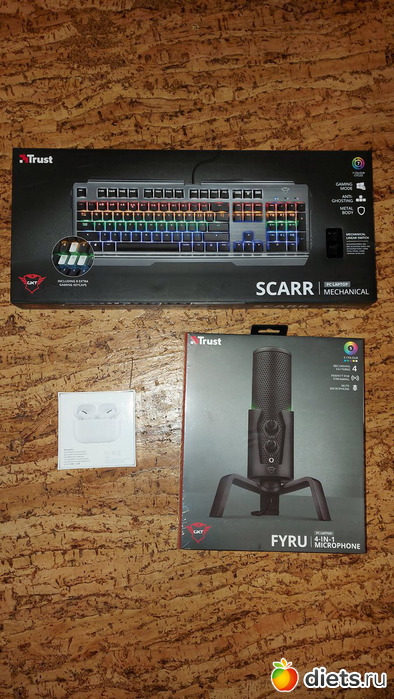 На баллы (вместо премии) муж заказал технику сыну на подарок - микрофон, беспроводные наушники и клаву