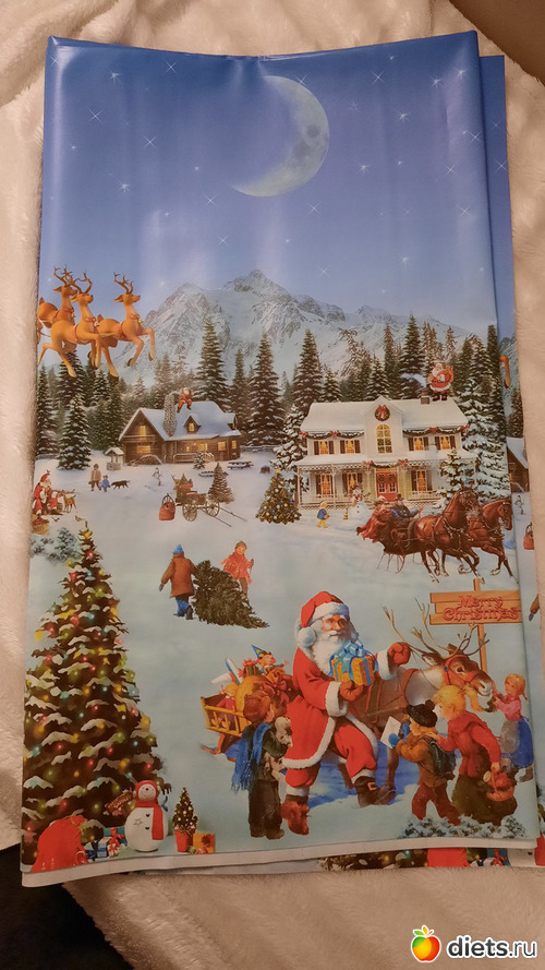 Мы уже начали получать новогодние подарки))) одни друзья подарили всем классную клеёнчатую скатерть с новогодним рисунком