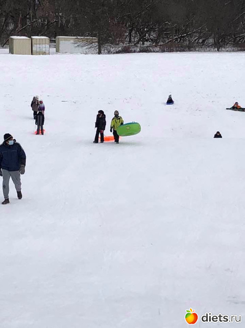 Потом к старшему сыну приехали друзья, и мы поехали все вместе на горку, эта горка длинная - самое главное наше зимнее развлечение. Там, как обычно, встретили кучу знакомых. В основном все в масках