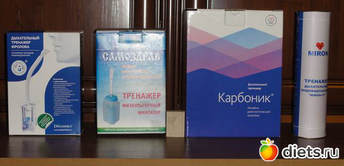 Тренажеры дыхательные в индивидуальной потребительской таре: Фролова (ООО «Динамика»), «Самоздрав», «Карбоник» и «MIRON» (модели «MIRON-01» и «MIRON-02»)