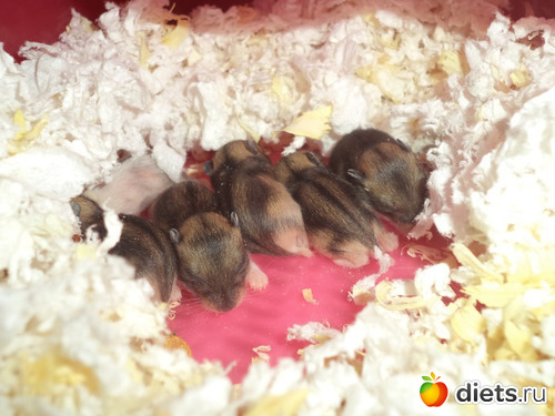 вот еще вспомнилось)))) про улетели( убежали) ...У нас хомячки родились 9 штук (!!) (фото из домашнего архива- 3 не влезли в кадр - ползали где то ))